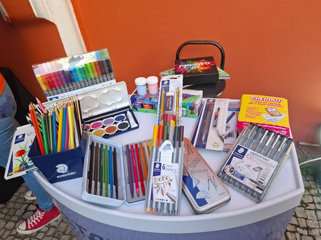Acredito que estão perguntando: se ela trabalha tanto, como tem tempo de aparecer por lá e fazer uma visita? Haha! Vou deixar as fotos da ultima exposição dos trabalhos dos alunos que presenciei e, lógico, que tive até a oportunidade de experimentar os lápis de cor da marca Staedtler e também fiz um botton! Tudo bem que neste dia o publico era mais infantil, mas eu não consigo ver um lápis de cor e ficar sem desenhar rsrsrsrs. Me joguei!